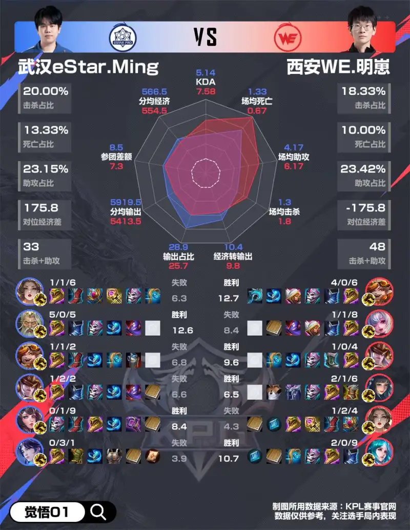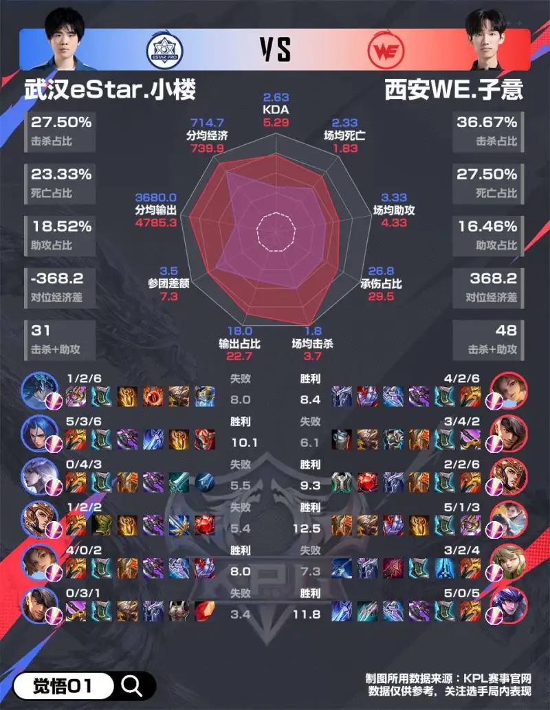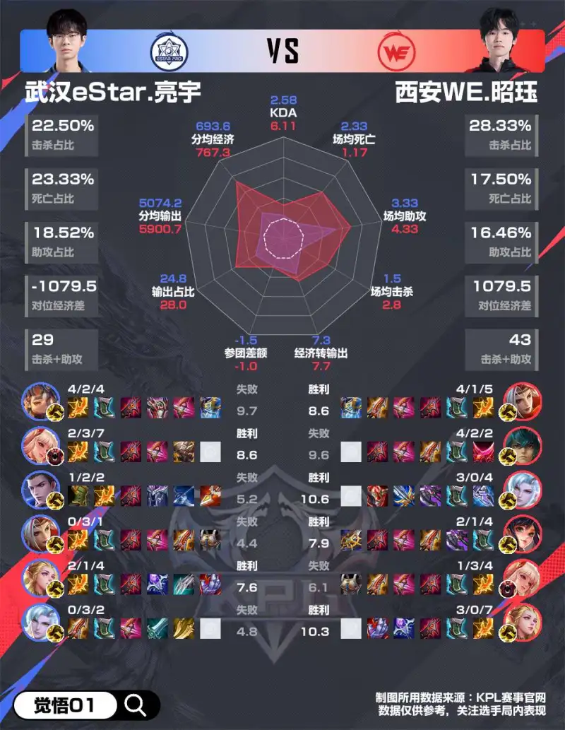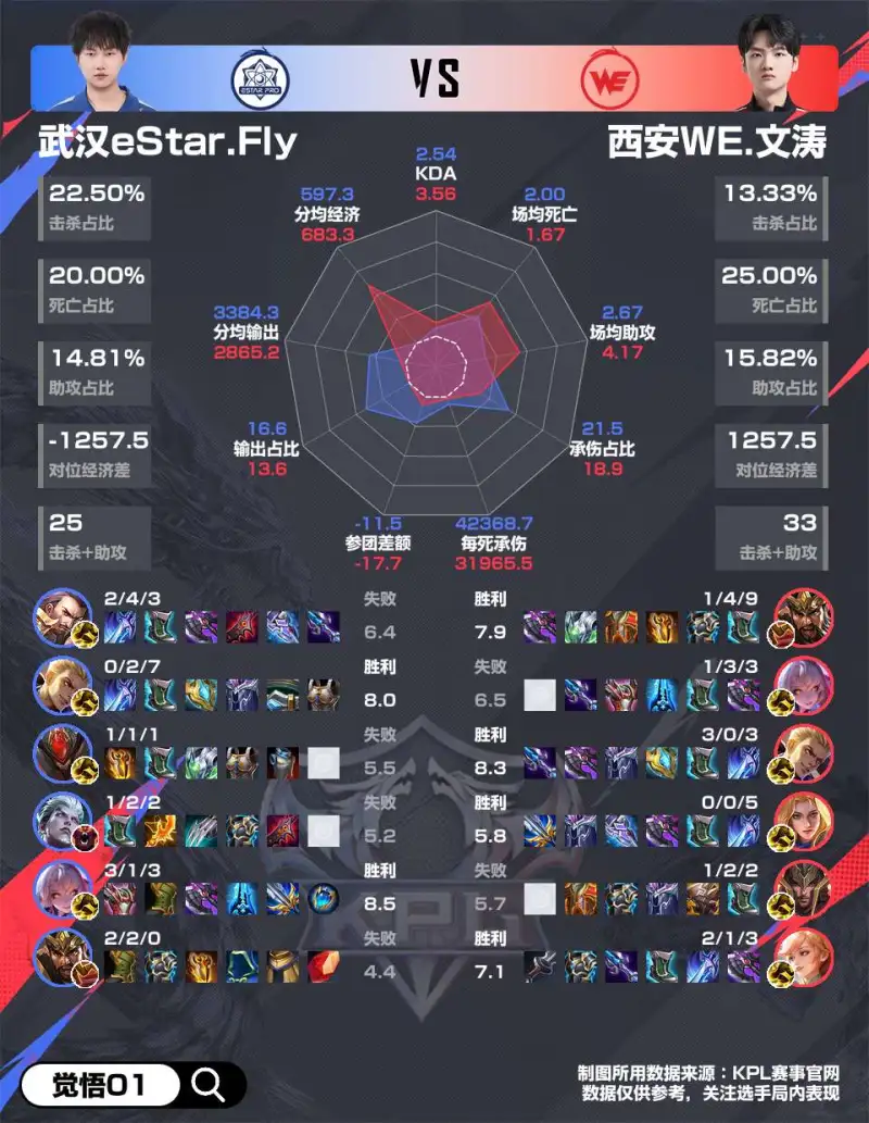 WE 4-2 eStar赛后雷达图,哪组对位差距最大?